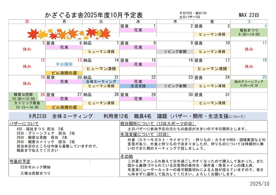 2025.10.01 10月の予定表を掲載しました。2025.08.29 9月の予定表を掲載しました。